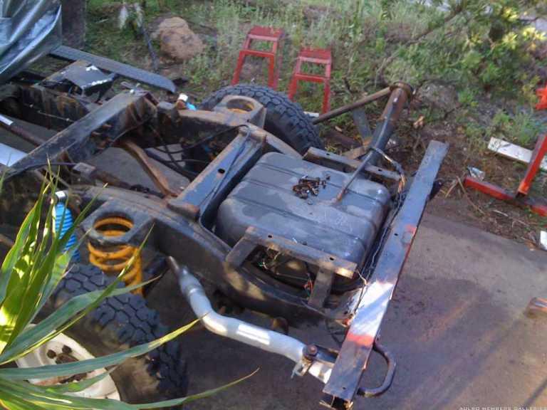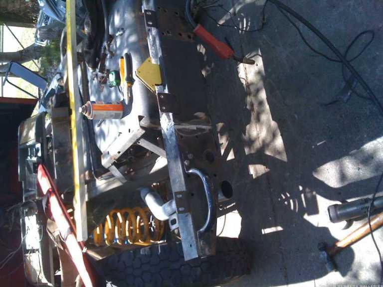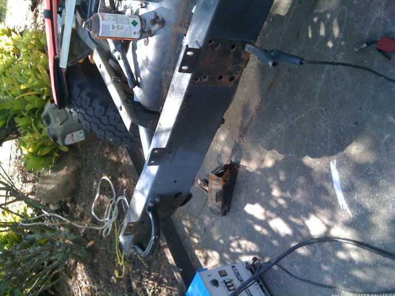 then into the rear cross member, scratch head then markout and oxy cut the damaged section out of the crossmember