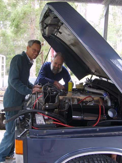 We are doing the engine conversion in Max's carport overlooking the creek giving us the opportunity to feed the ducks.