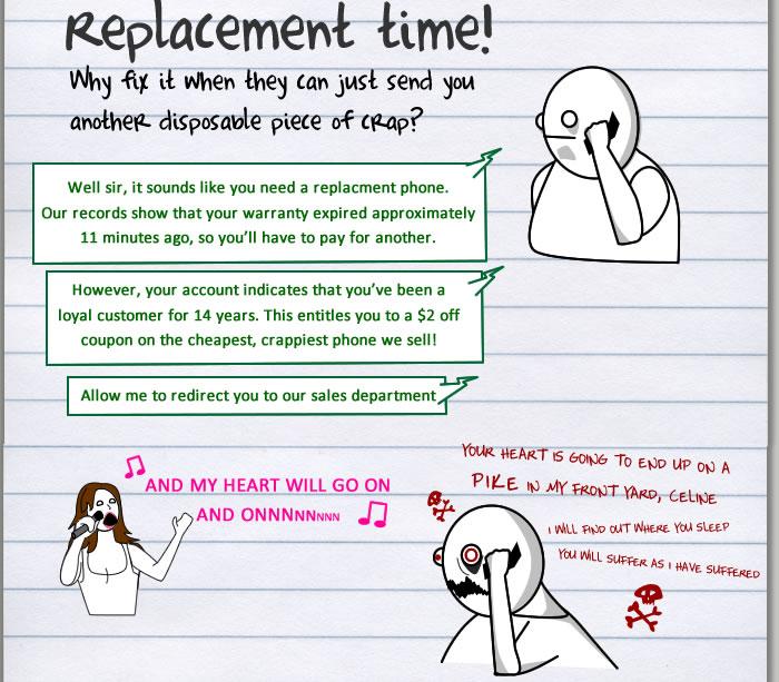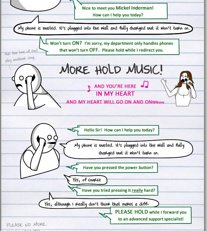 I read all that and I still don`t know if he got a new phone or weather he got to finally like Celine. Bit like real customer service, never get all the answers you wan`t.