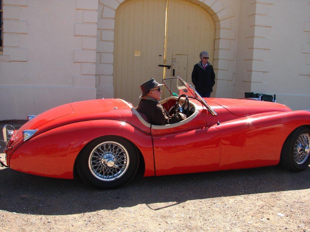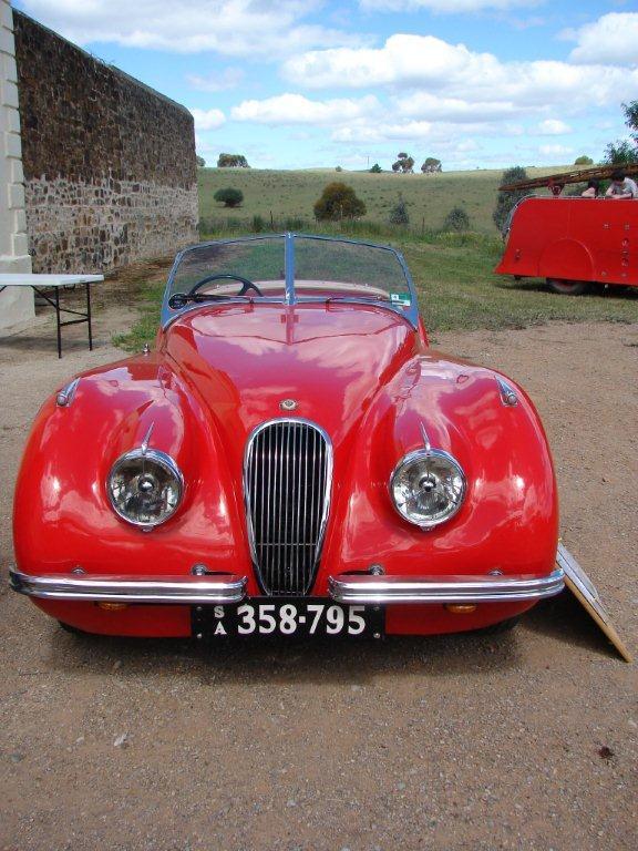 Knock off wire wheels were an extra cost option. Plain disc wheels were the standard equipment. XK120's had appalling brakes and I recall working briefly for a mechanical shop in Brisbane that prepared a few race cars and drilling ventilation holes in the wheel centres using a radial arm drill, three drill bits per hole. Thirty-six operations per wheel. They also overheated badly in Qld. summers particularly racing in the heat and high speeds of Lowood. An amphibious Jeep radiator was tailor made for the application fitting neatly in the narrow nose.