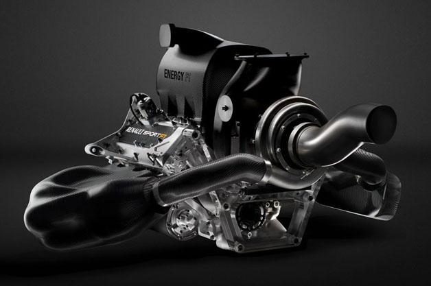The Renault Energy F1-2014 Power Unit is comprised of a 1.6-liter turbocharged V6 engine with direct injection and a 15,000 rpm redline mated to a new Energy Recovery System with two electric motors – one recovering energy from the brakes and the other from the exhaust – storing the energy in an onboard battery (as opposed to the mechanical flywheel other constructors had toyed with earlier). Together they're capable of producing 760 horsepower – around 600 horses comes from the internal-combustion engine and the rest from the hybrid assist.