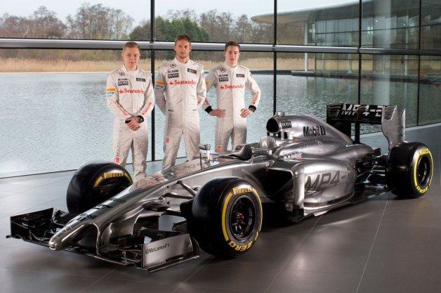The 2014 McLaren Formula One car has officially been unveiled. The new, turbocharged MP4-29 will be piloted by former world champion Jenson Button and Danish rookie Kevin Magnussen. The 2014 F1 season is set to be a challenging one for McLaren, as it attempts to bounce back from its first winless season since 2006 and its first season without a podium since 1980.