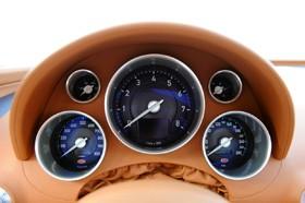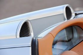 When we drove the Veyron coupe, we admitted to not being carried away by its looks, but we found a greater appreciation for the lines of this car. Excising a portion of the roof doesn't change our minds, but that isn't to say that the design doesn't look good. More importantly, that isn't to say that the Bugatti doesn't have a certain... something... that will impress itself upon you even after just one meeting. From the side, although the car's surfaces are austere, how they intersect in three dimensions is rather lively. Our favorite line is from the rear three-quarter, the fender edge that forms the shoulder of the door then appears to turnabout in a varying-radius 180, back to the front wheel, and delineates the top edge of sill.