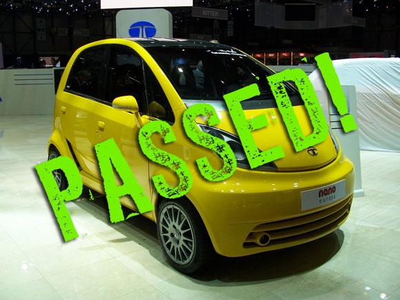 The Tata Nano, the diminutive Indian four-door econobox rumored to eventually arrive in U.S. showrooms, has reportedly passed current European impact testing. According to Autocar, the offset front and side impact tests took place at the MIRA test center last week under supervision by an inspector from Britain's Vehicle Certification Authority. A spokesperson for Tata said the company is "delighted but not surprised" with the results, as the car had already been tested in India.