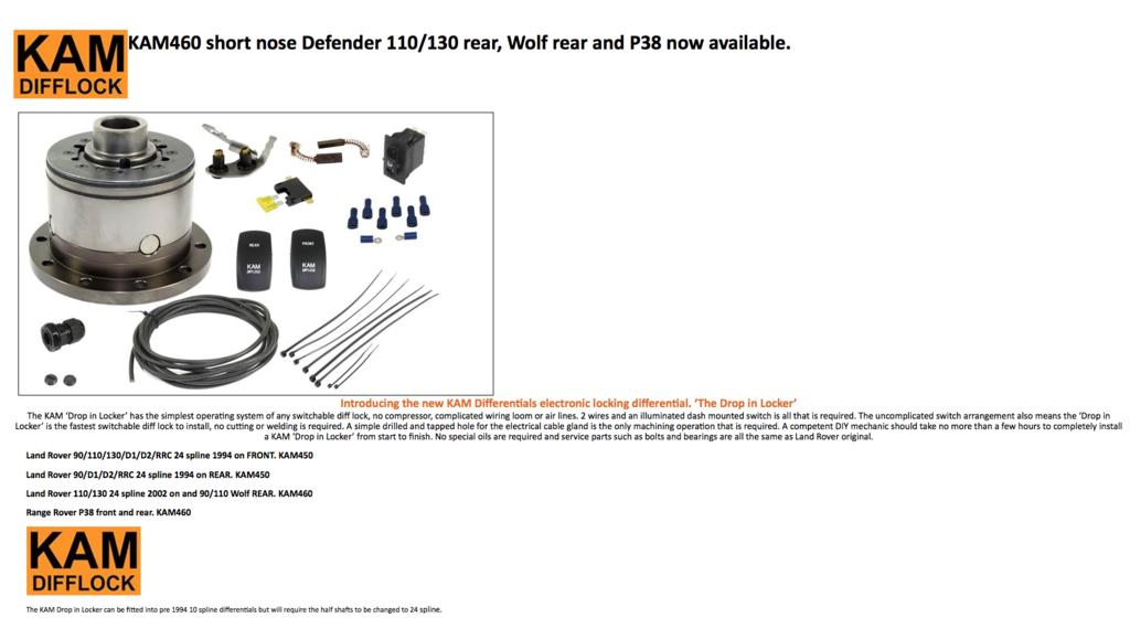 Fitting a KAM electronic locking differential known as the ?Drop in Locker? due to its ease of installation can make all the difference between success and failure when tackling off road obstacles or negotiating very low grip conditions.