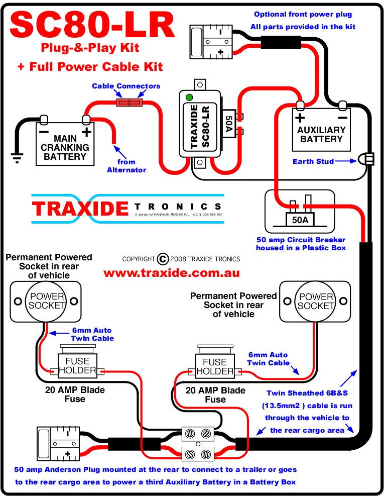 The kit has everything in it to be able to run battery charging cable to the rear of a D3, to charge an auxiliary battery in a caravan, camper trailer or float and comes with an additional 50 amp Anderson plug to make the connection between the D3 and tow vehicle.