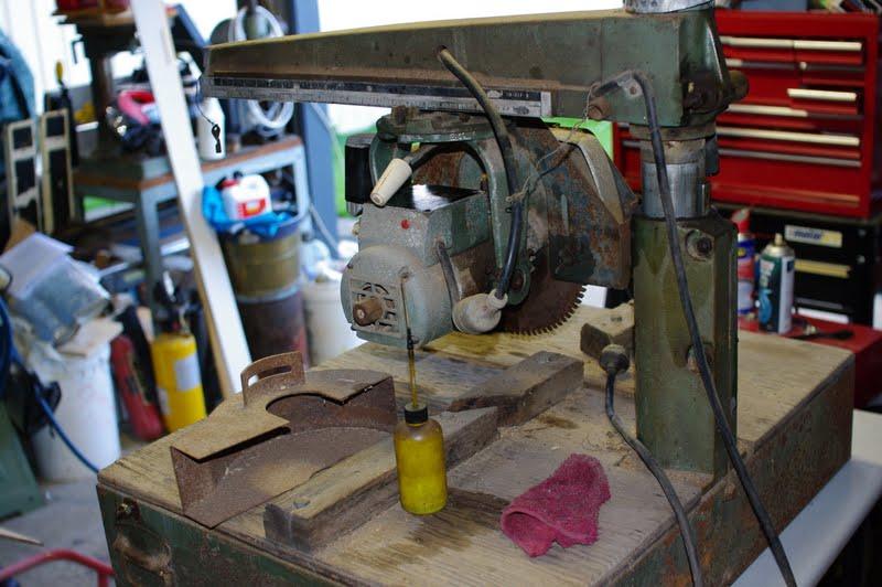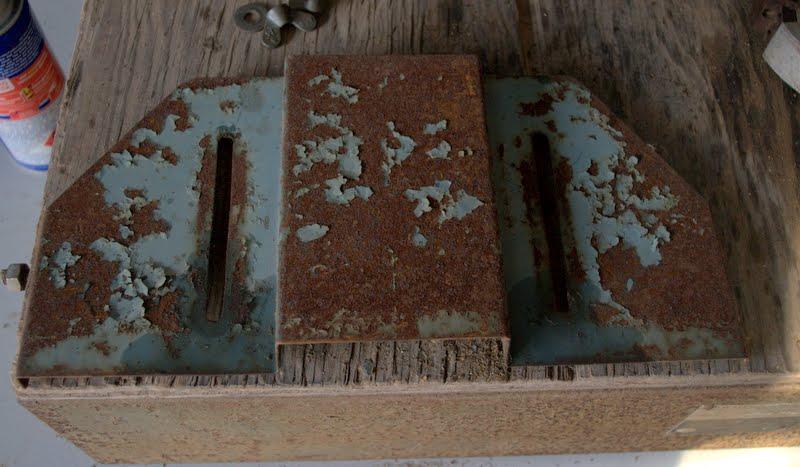 The aluminium blade guard was scraped and wire-brushed, not put in molasses.