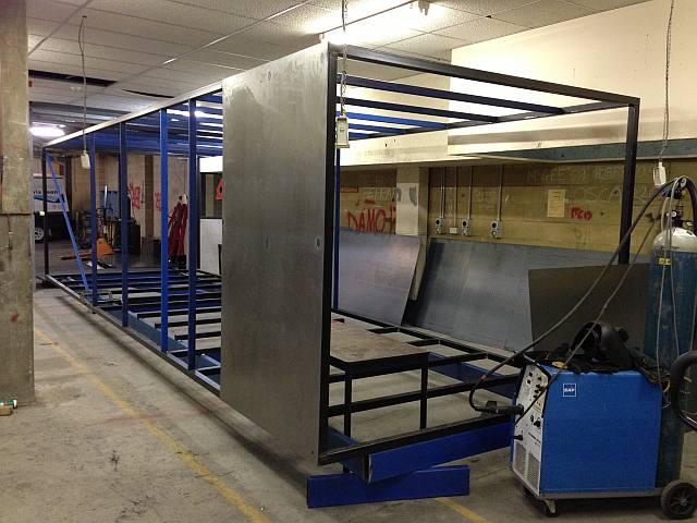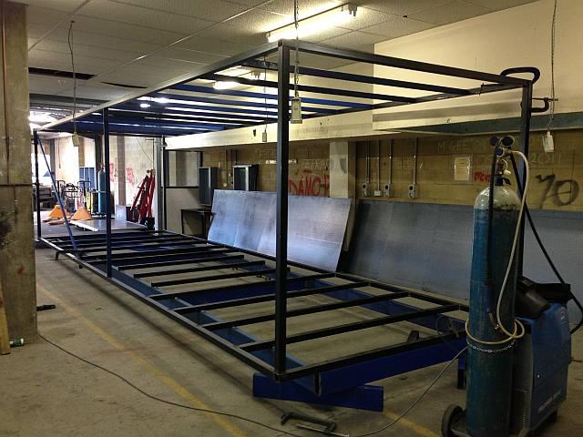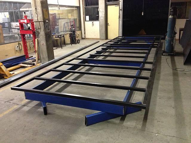 Joists were spaced off the floor sheets to prevent any culumlative error in the spacing. The joists, rails and chassis was all welded together.