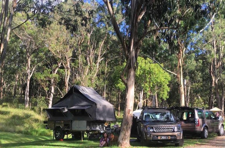 The photo below is not the best but gives you an idea. It is far, far easier to set up and pack up than the more traditional style of camper trailer.