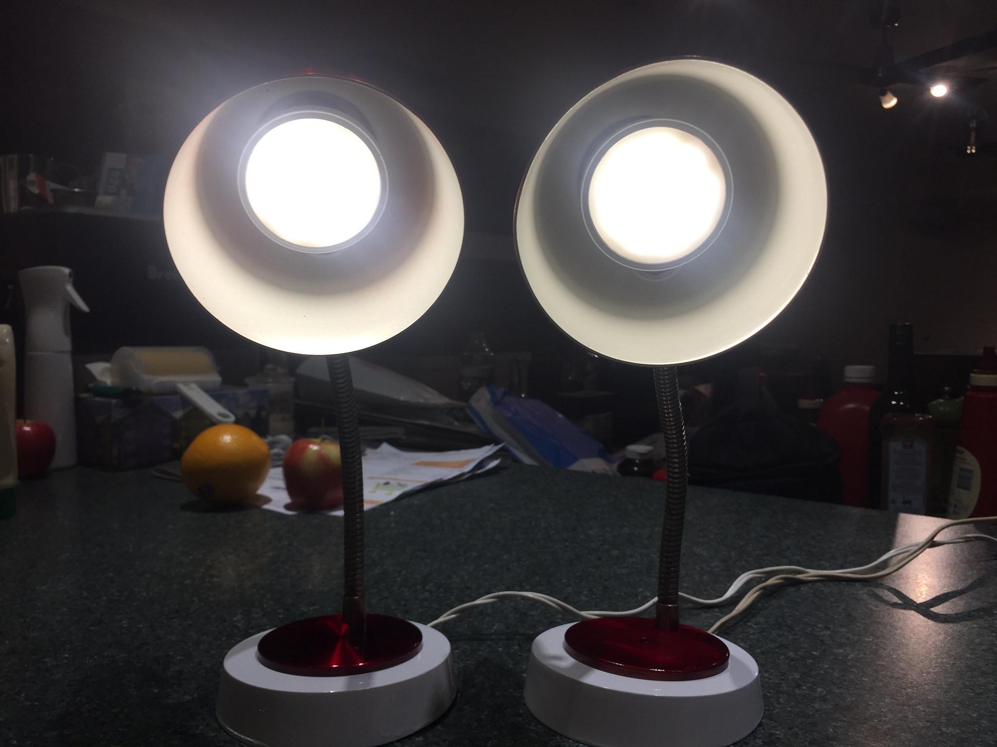 Done! 2 identical bedside lamps - I've run the cable internal to them now as they will be fixed into position. Plenty of light to read by and only draw 3 watts each!