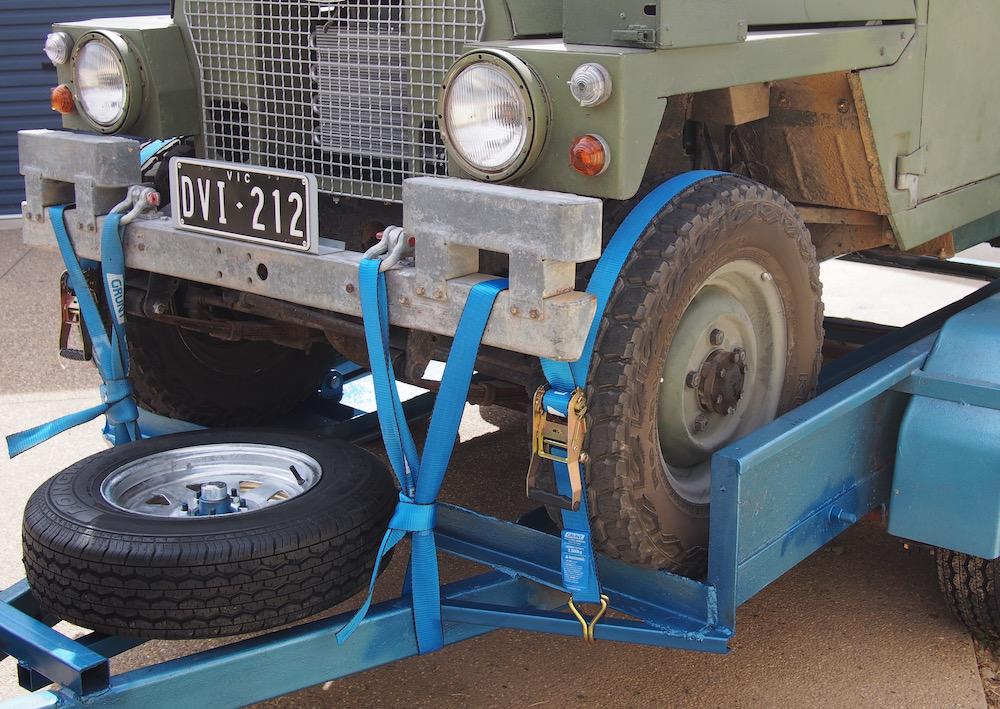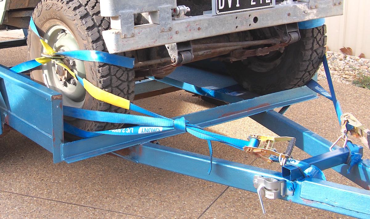 I would also tie the rear down, either a strap over the wheels or direct to the diff housing to the trailer at a minimum angle.