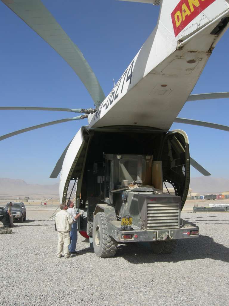 The Russian Mi26 is the world's largets lift helicopter, capable of lifting up to 20t (temp & alt dependent). It is an amazing work-horse, and we have been supporting the Dutch, Australian, US, and UK militaries in Southern Afghanistan for the past 16 mths.